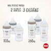 Perfect Match nappflaska finns i 2 storlekar: 150 ml (inkl. dinapp stl S) och 260 ml (inkl. dinapp stl M).