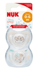 NUK Trendline är ortodontiskt utformad. Tillverkad i mjuk silikon. NUK Air System gör att luft kan strömma fritt genom sugdelen.